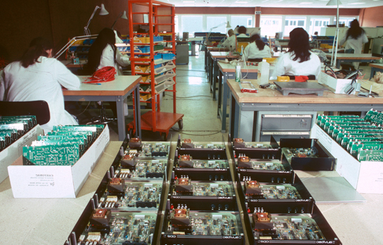 Atelier de mécanique, atelier de sérigraphie, bureau d’étude, développement de circuit imprimé, approvisionnement et stockage de composants, câblage, réglage, conditionnement et distribution, nous gérions, en interne, la totalité des opération de A à Z.