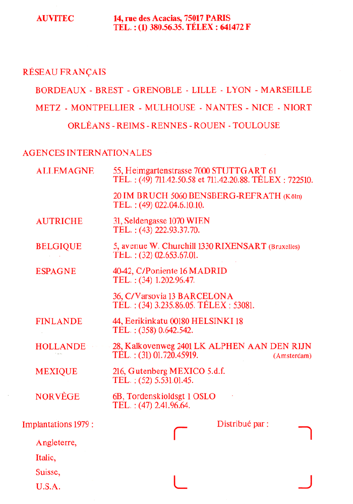 A partir de janvier 1976 AUVITEC s'installe au 14, rue des ACACIAS.