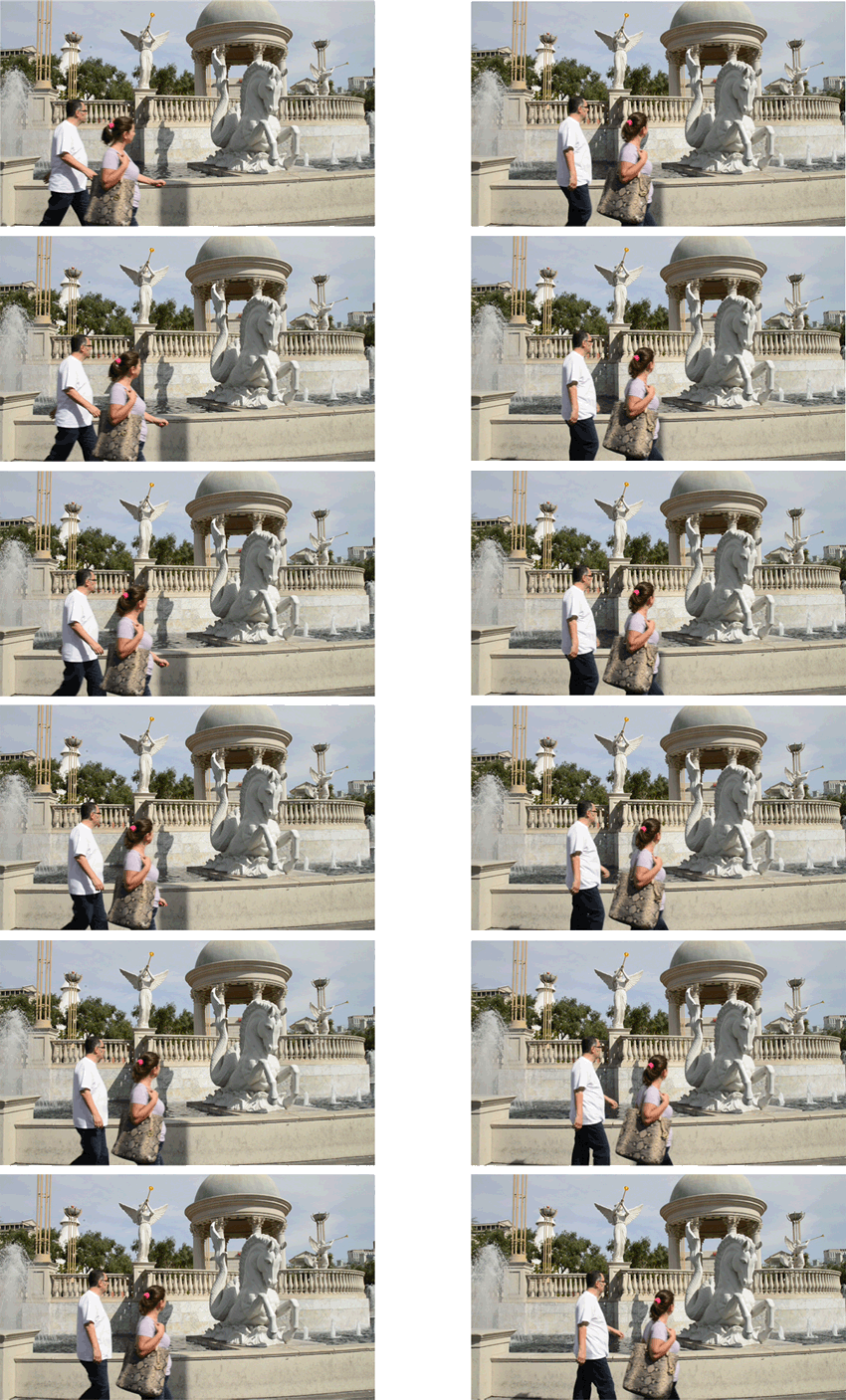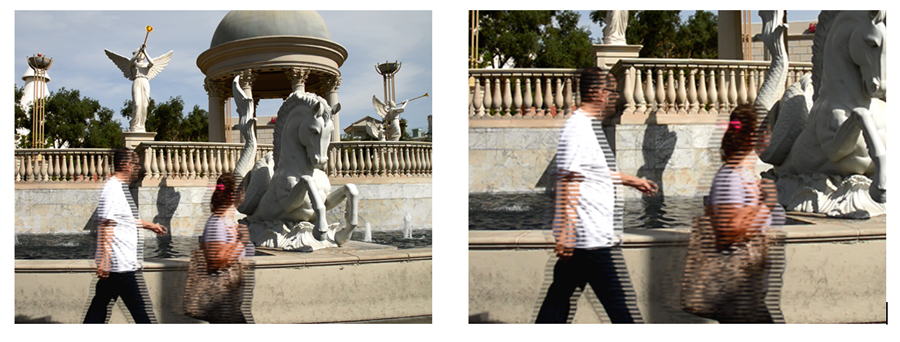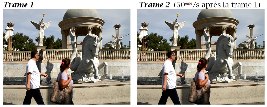Il y a un décalage perceptible entre les deux trames du fait des personnages en mouvement, ce qui n’est pas le cas du fond de l’image qui est immobile.