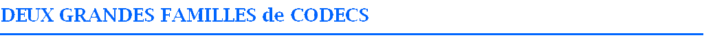A partir des techniques disponibles on peut apporter des variations à l’infini et fabriquer nombre de Codec’s. C’est bien entendu ce qui s’est réellement passé.