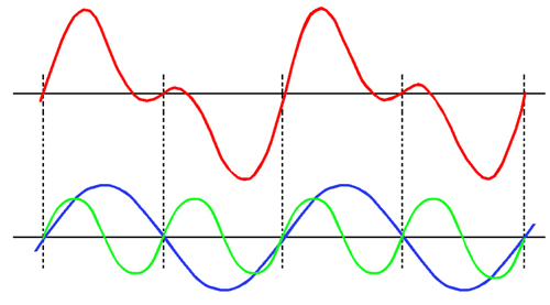 Ici, un exemple avec une fondamentale et un harmonique 2